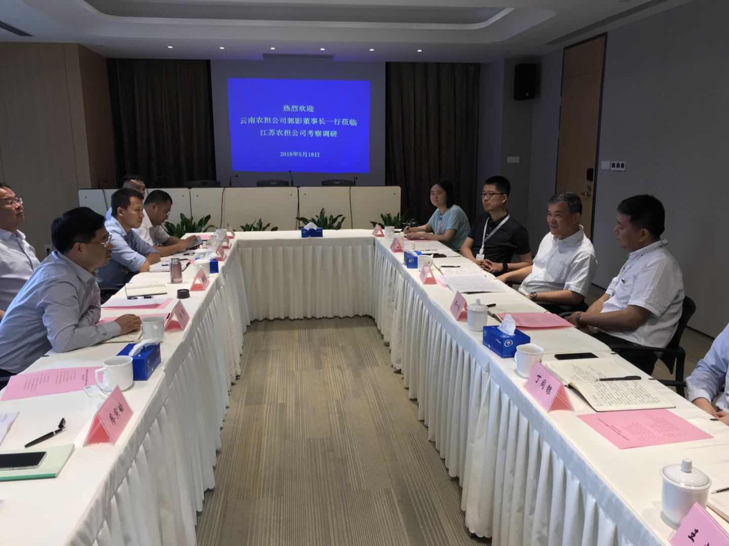 5月18日上午,郭影董事長、杜開波總經(jīng)理、廖寅皓副總經(jīng)理率農(nóng)擔(dān)一部、二部、風(fēng)控部、機(jī)構(gòu)部到江蘇省農(nóng)業(yè)信貸擔(dān)保有限公司進(jìn)行學(xué)習(xí)交流。雙方就公司業(yè)務(wù)發(fā)展、體系建設(shè)、政策支持等方面進(jìn)行了深入交流。