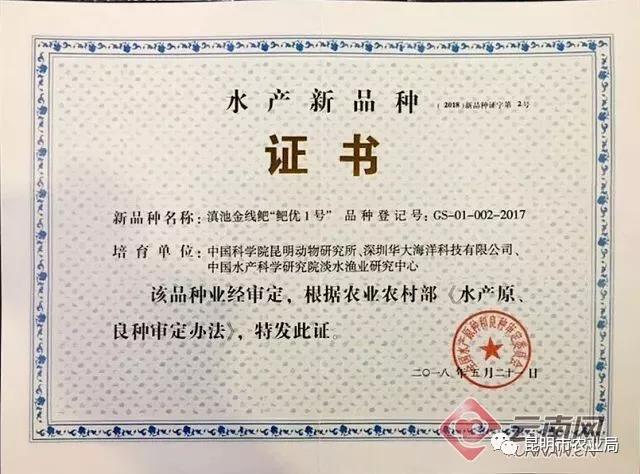 日前,由中國科學(xué)院昆明動物研究所聯(lián)合深圳華大海洋科技有限公司、中國水產(chǎn)科學(xué)研究院淡水漁業(yè)研究中心研發(fā)培育的新品種——滇池金線鲃“鲃優(yōu)1號”,正式獲農(nóng)業(yè)農(nóng)村部的官方認(rèn)定,在水產(chǎn)種業(yè)發(fā)展論壇上獲得農(nóng)業(yè)農(nóng)村部頒發(fā)的水產(chǎn)新品種證書。這標(biāo)志著滇池金線鲃有望實(shí)現(xiàn)規(guī)模化商業(yè)養(yǎng)殖。