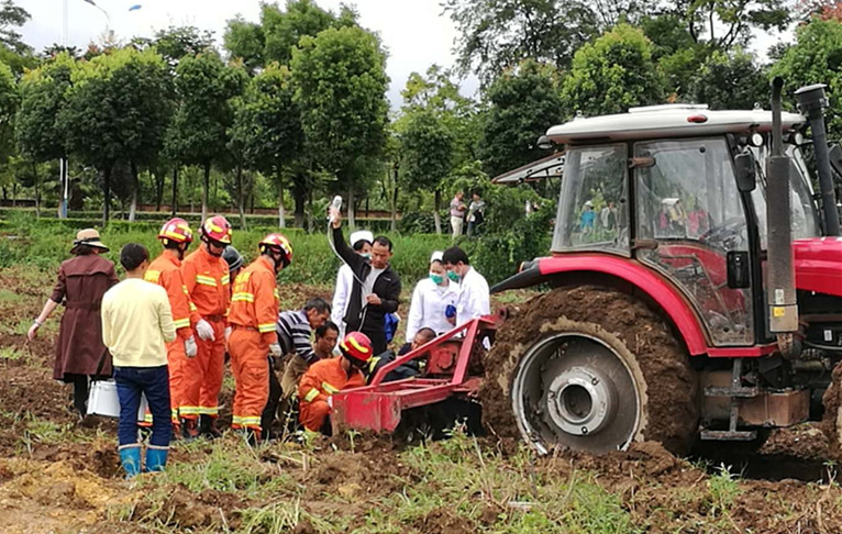 本次演練采取實(shí)戰(zhàn)演練。模擬了拖拉機(jī)駕駛員在進(jìn)行旋耕作業(yè)時(shí)雜草纏繞機(jī)具,在未熄火停機(jī)情況下下車(chē)檢查而造成刀片傷人事故及另一名拖拉機(jī)駕駛員因圍觀(guān)事故現(xiàn)場(chǎng)分神造成拖拉機(jī)側(cè)翻點(diǎn)燃秸稈引發(fā)火災(zāi)的次生事故。演練由農(nóng)業(yè)、公安、消防、急救等多部門(mén)協(xié)同配合,對(duì)農(nóng)機(jī)事故報(bào)案、接報(bào)農(nóng)機(jī)事故啟動(dòng)應(yīng)急響應(yīng)、農(nóng)機(jī)事故現(xiàn)場(chǎng)救援、事故現(xiàn)場(chǎng)突發(fā)情況處理、農(nóng)機(jī)事故現(xiàn)場(chǎng)勘查、調(diào)查認(rèn)定責(zé)任、賠償調(diào)解等科目進(jìn)行演練,著力檢驗(yàn)我省農(nóng)業(yè)主管部門(mén)及其農(nóng)機(jī)安全監(jiān)理機(jī)構(gòu)對(duì)農(nóng)機(jī)事故的應(yīng)急響應(yīng)能力,各相關(guān)部門(mén)聯(lián)合開(kāi)展農(nóng)機(jī)事故應(yīng)急處理救援的協(xié)作配合水平,農(nóng)機(jī)安全監(jiān)理人員處理農(nóng)機(jī)事故的實(shí)際能力水平,以及各級(jí)農(nóng)機(jī)事故應(yīng)急處理預(yù)案的科學(xué)性、操作性,查找農(nóng)機(jī)事故應(yīng)急處理救援存在的問(wèn)題和不足,推進(jìn)建立統(tǒng)一領(lǐng)導(dǎo)、分級(jí)負(fù)責(zé)、反應(yīng)及時(shí)、規(guī)范有序、協(xié)作聯(lián)動(dòng)、科學(xué)高效的應(yīng)急體系,全面加強(qiáng)農(nóng)機(jī)事故應(yīng)急管理工作。
