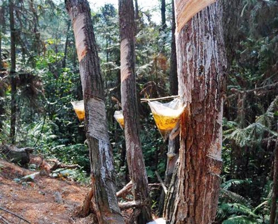家住白沙村楊梅樹(shù)組的楊忠寶,種植松樹(shù)100畝,他告訴筆者:“松樹(shù)一年四季都可以采割,現(xiàn)在我們學(xué)會(huì)了科學(xué)的采割技術(shù),不僅松脂量增多了,松樹(shù)也得到了有效保護(hù),一年下來(lái)松脂收入有6萬(wàn)元,松脂成為了我們老百姓的‘綠色銀行’”。