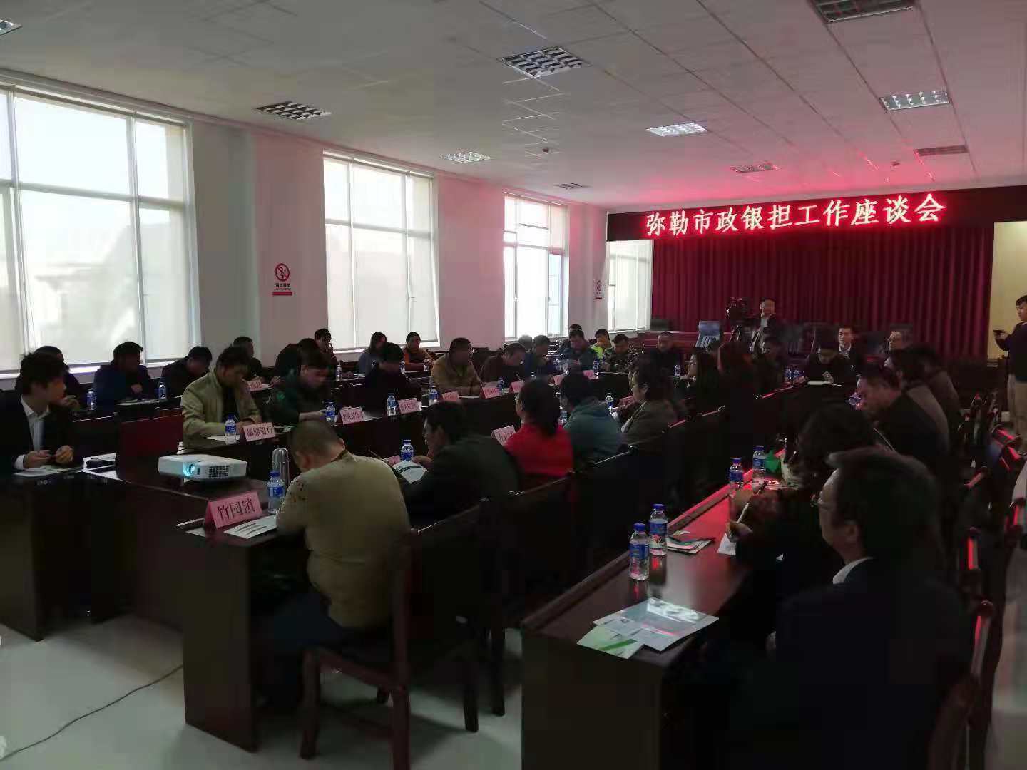 2018年11月28日,省農擔公司彌勒辦事處負責人趙閆攜辦事處工作人員參加彌勒市政銀擔工作座談會。參會單位有彌勒市市政府、財政局、農科局、市人民銀行、郵儲銀行、各鄉(xiāng)鎮(zhèn)負責人等30余家彌勒市中小微企業(yè)代表。