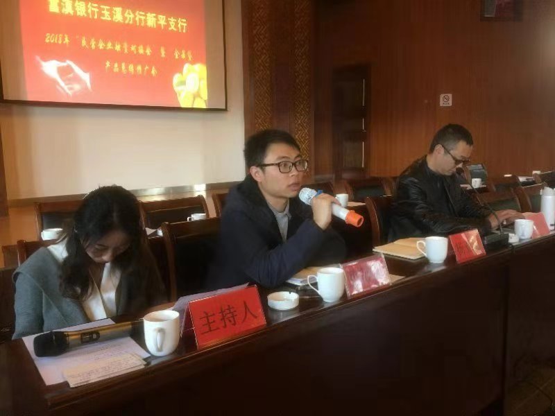 2018年12月6日,玉溪辦事處莽林琦、段曉萍應邀參加富滇銀行玉溪新平支行2018年“民營經(jīng)濟座談會”暨“金果貸”產(chǎn)品推廣總結會。新平縣人民銀行、工業(yè)園區(qū)、工信局、財政局、招商局、農(nóng)業(yè)局、林業(yè)局、云南省信用再擔保有限公司及新平縣47家農(nóng)業(yè)企業(yè)代表參與會議。玉溪辦莽林琦對農(nóng)擔公司成立背景、客戶準入、業(yè)務流程、反擔保條件及玉溪地區(qū)業(yè)務開展情況等進行了詳細介紹,對國家金融惠農(nóng)政策進行宣講,并與參會企業(yè)進行互動交流、現(xiàn)場答疑。富滇銀行玉溪分行公司部總經(jīng)理楊亞進、個人業(yè)務部總經(jīng)理張玉宇對富滇銀行主要涉農(nóng)產(chǎn)品及目前發(fā)展現(xiàn)狀與玉溪辦進行交流探討,雙方達成支持新平縣特色產(chǎn)業(yè)發(fā)展的共識,為推進新平“金果貸”業(yè)務進一步拓展夯實合作基礎。