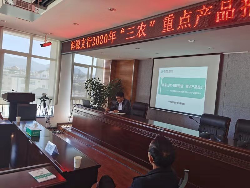 2020年1月15日,大理辦事處業(yè)務人員董定臣、陳鵬、董瑩、劉星宏受農(nóng)業(yè)銀行洱源縣支行邀請,參加由其牽頭舉辦的“2020年‘三農(nóng)’重點產(chǎn)品推介會”,旨在在新的一年里更加積極地拓寬業(yè)務范圍深化銀擔合作。除我公司業(yè)務人員,供銷社主任與縣內(nèi)合作社近30家參加此次會議。