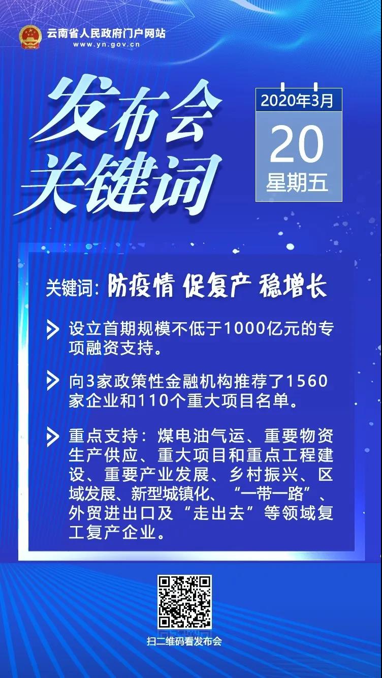3月20日,云南省新冠肺炎疫情防控工作第二十五場新聞發(fā)布會(huì)召開,云南省發(fā)展和改革委員會(huì)、國家開發(fā)銀行云南省分行、農(nóng)業(yè)發(fā)展銀行云南省分行、中國進(jìn)出口銀行云南省分行等單位負(fù)責(zé)人,介紹切實(shí)發(fā)揮金融支持實(shí)體經(jīng)濟(jì)作用,保障復(fù)工復(fù)產(chǎn)企業(yè)資金需求有關(guān)情況,并回答記者提問。