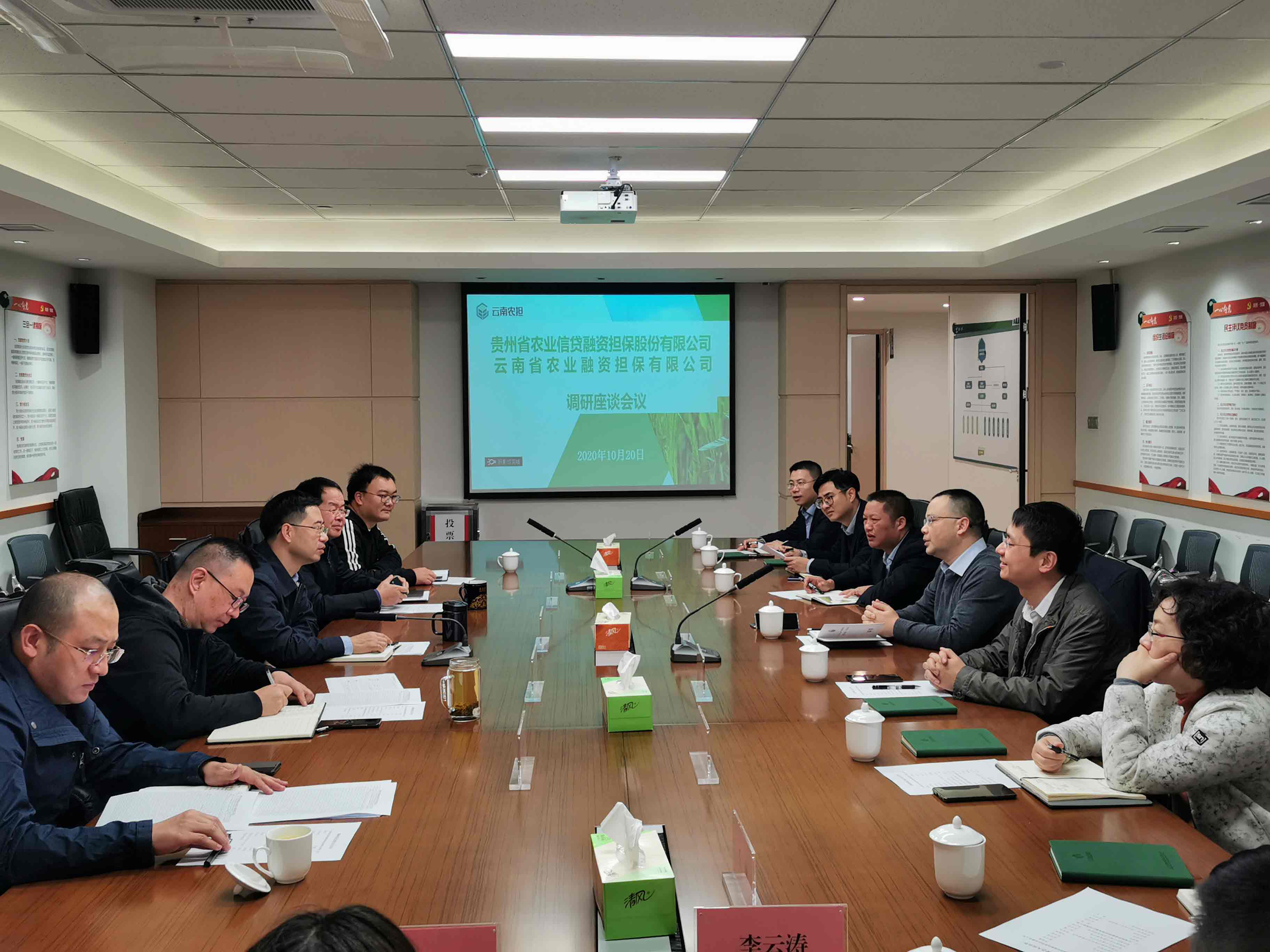 10月19日-20日,貴州農(nóng)擔(dān)公司董事長羅道斌、副總經(jīng)理唐方宇、風(fēng)控總監(jiān)祖文周一行赴云南農(nóng)擔(dān)調(diào)研交流。云南農(nóng)擔(dān)公司董事長郭影、總經(jīng)理杜開波、副總經(jīng)理廖寅皓率農(nóng)擔(dān)一部、風(fēng)控部、戰(zhàn)略部與貴州農(nóng)擔(dān)公司進(jìn)行了交流座談。