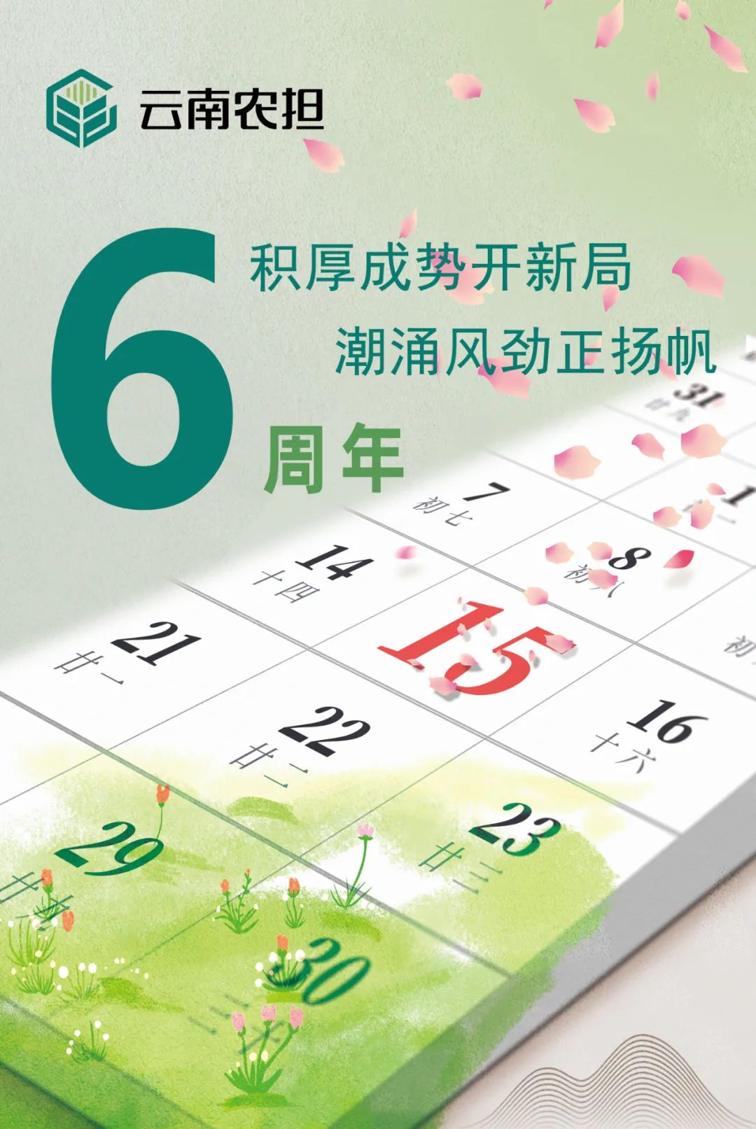 年輪添了新痕,歲月翻開(kāi)新篇。今天是云南省農(nóng)業(yè)融資擔(dān)保有限公司成立六周年的日子。